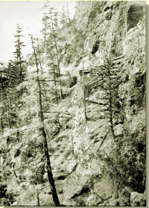 Introduction | IntroductionWhen the news of the golden gravel reached those seeking to find their riches in gold, miners learned that most problems encountered in 1858 were the difficulties in reaching the "new-found" gold-fields. The new gold-fields were 400 miles north and east of Yale, in what is known today as British Columbia. The route over the province was extremely mountainous, covered by mile after mile of thick entwined underbrush, and protected by mountain passes which in April had snow five feet deep! In parts of the journey north to the gold-fields of the Cariboo, the roads and trails were dangerous. Bad and fatal accidents often occured, Several methods of transportation were improved with the building of the Cariboo Wagon Road, noted by some as the, "Eighth Wonder of the World!" The gold-fields were then more accessible for the miners to travel with their supplies to the gold-fields by mule, freight wagon, horse, and even camels, using the Cariboo Wagon Road! ![]() ![]() ![]()